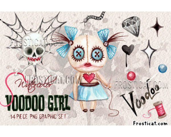 14 Halloween Watercolor Voodoo Girl Png Bundle