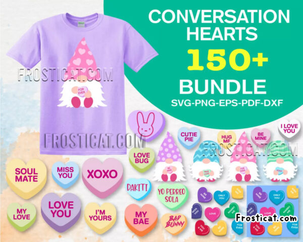 150 Conversation Hearts Svg Bundle, Valentines Day Svg