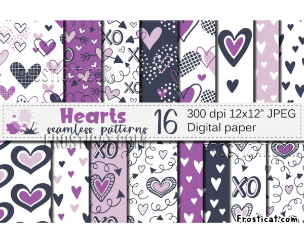 Be the first to review “16 Valentine Purple Hearts Seamless Patterns Bundle”