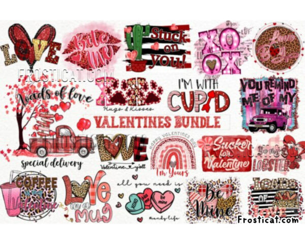 18 Valentines Day Glitter Leopard Print Png Bundle