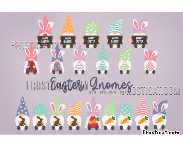 20 Cute Easter Bunny Ears Gnome Svg Bundle