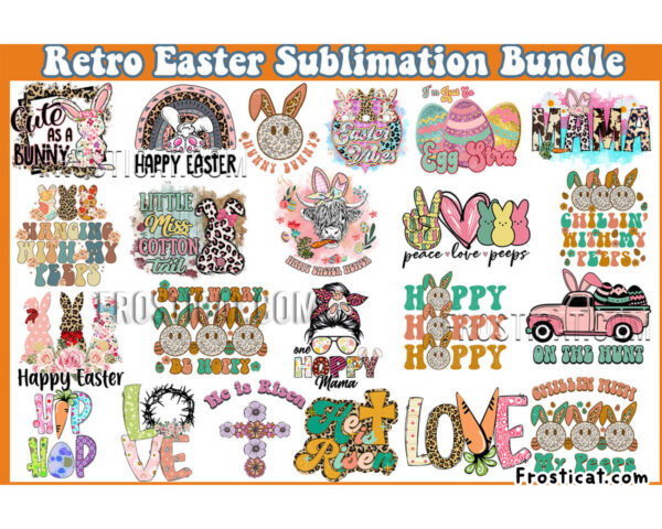 22 Retro Easter Sublimation Png Bundle, Happy Easter Png