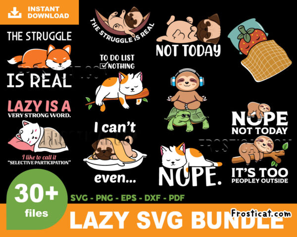 30 Lazy Svg Bundle, Cat Svg, Dog Svg, Sloth Svg, Kitten Svg