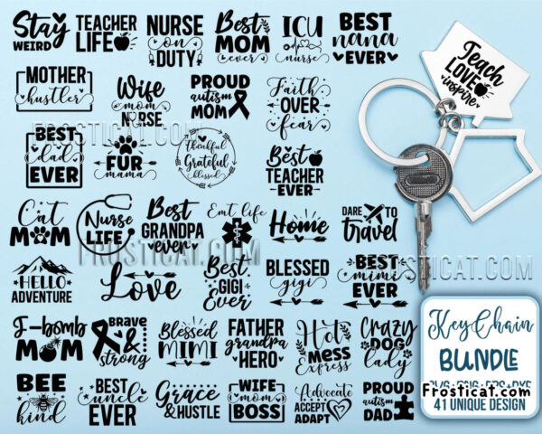 41 Keychain Svg Bundle, Keychain Pattern Svg, Keychain Svg