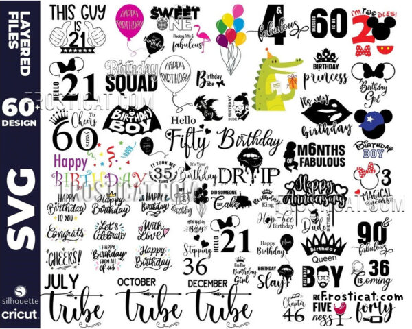 60 Happy Birthday Svg Bundle, Cake Topper Svg, Birthday Svg